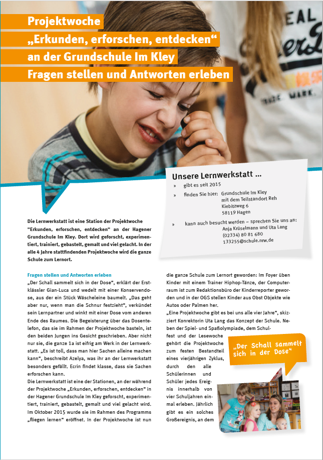 Reportage zur Projektwoche "Erkunden, erforschen, entdecken" an der Grundschule Im Kley